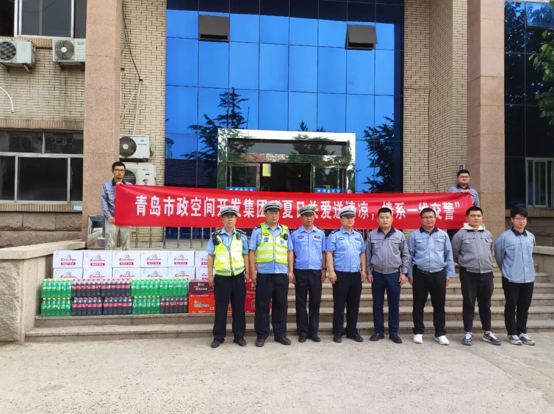 青島市政空間開發集團所屬道橋公司環城北路改建工程項目部黨支部(以下簡稱“項目部黨支部”)組織開展“夏日關愛送清涼,情系一線交警”主題黨日活動,來到市公安局城陽分局交通警察大隊城陽中隊(以下簡稱“交警城陽中隊”),為奮戰在一線的警官們送去礦泉水、飲料、方便面等50余箱慰問品,感謝他們用優質的服務和規范的管理為城陽區營造了良好的道路交通秩序,為廣大群眾出行帶來便利,為項目建設提供支持保障。